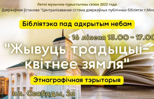 20.07.2022Государственное учреждение “Централизованная система городских публичных библиотек г.Минска” 16 июля организовала у Ратуши этнографическую территорию «Жывуць традыцыі – квітнее зямля». В Год исторической памяти актуально сохранение и развитие материального и