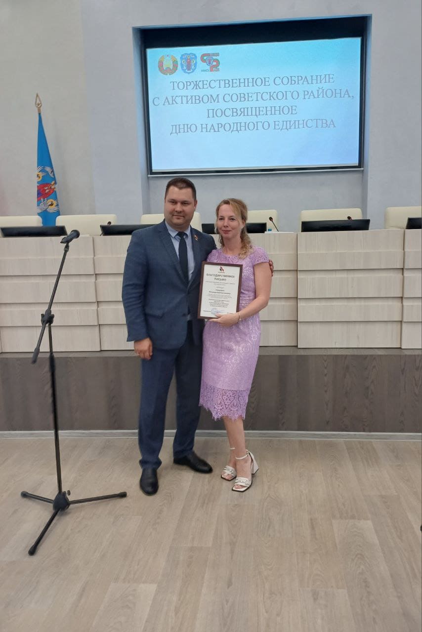 Благодарственным письмом Советской районной организации г.Минска РОО “Белая Русь” награждена Грицевич Наталия Константиновна (2022г.)