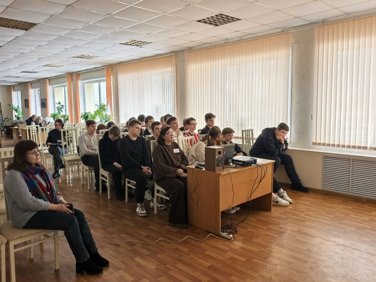 Навучэнцы актыўна ўдзельнічалі ў абмеркаванні, іх зацікавілі тэмы гісторыі і справядлівасці, узнятыя пісьменнікам.