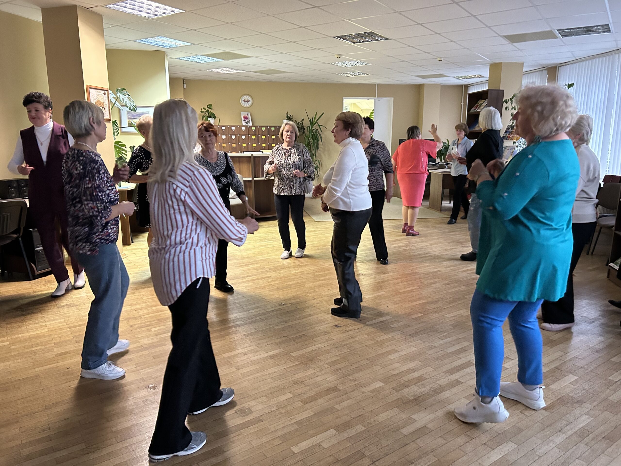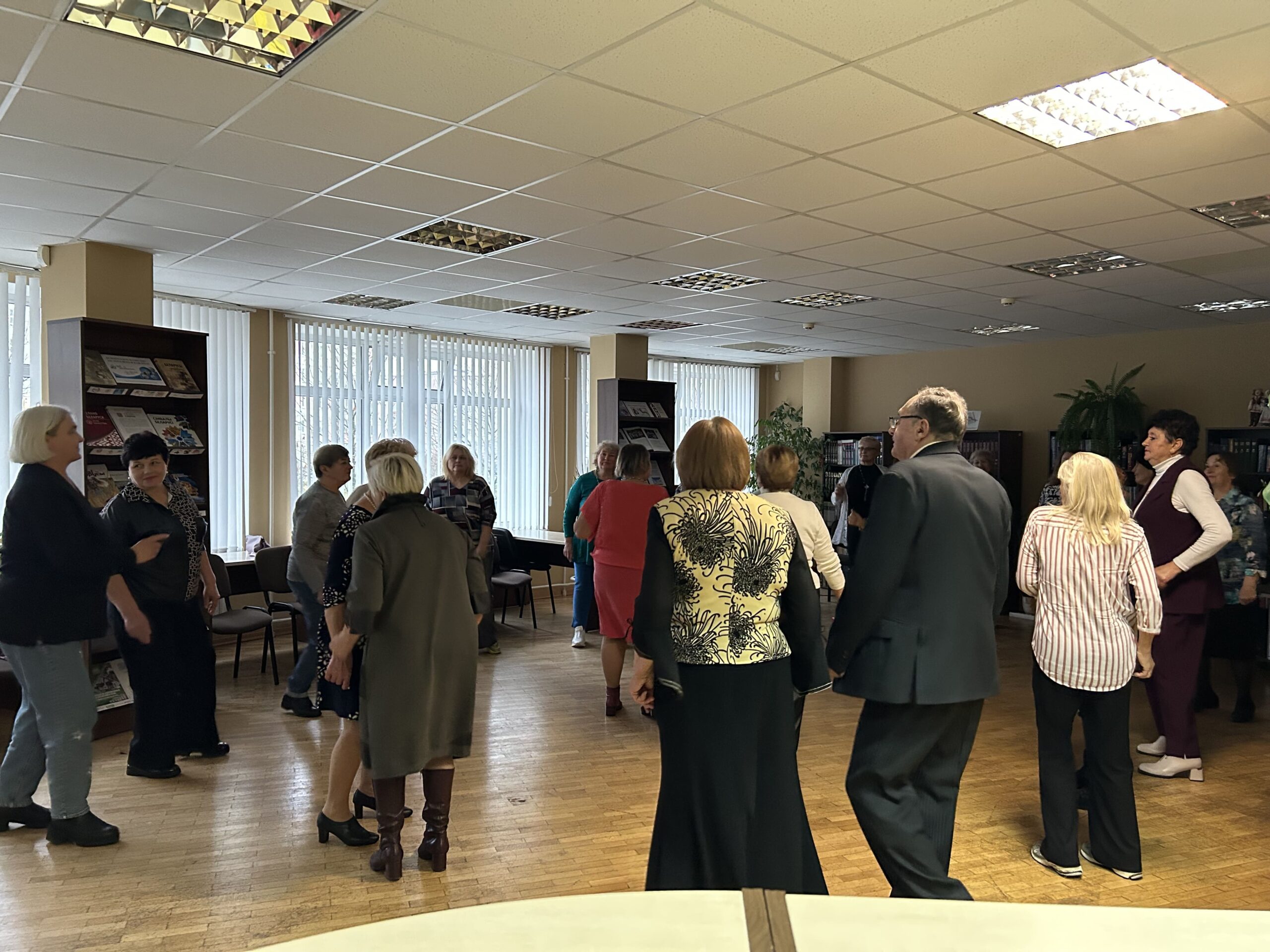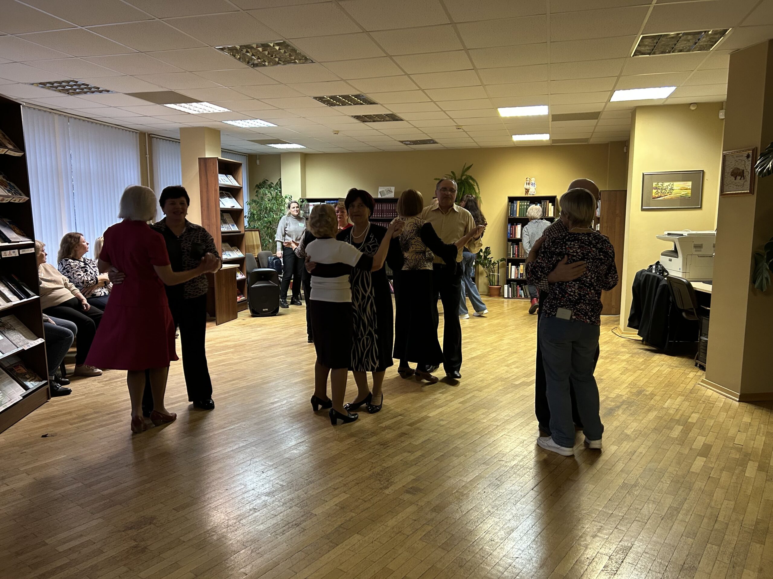 Стало доброй традицией проводить танцевальные вечера «для тех, кому за» в библиотеке. 24 октября в читальном зале библиотеки № 22 вновь собралась команда любителей потанцевать. В рамках проекта «Танцевальные вечера» сотрудники библиотеки подготовили танцевально-развлекательную программу для наших читателей. Звучали мелодии прошлых лет, под которые собравшиеся кружились в ритме вальса, танцевали танго и зажигательные современные танцы белорусских, русских и зарубежных исполнителей.